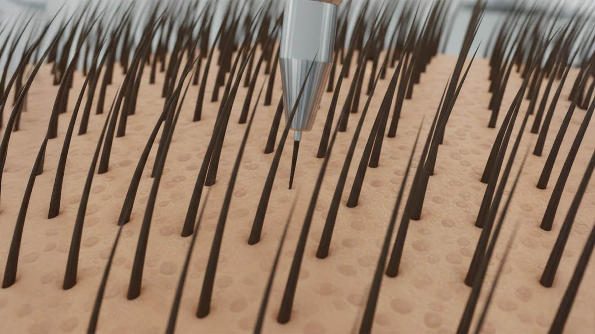 تقنية DHI (الزرع المباشر) تعتمد على دقة عالية دون الحاجة لفتح قنوات مسبقاً كما في FUE. يتم زرع كل بصيلة مباشرة في المكان المطلوب.
